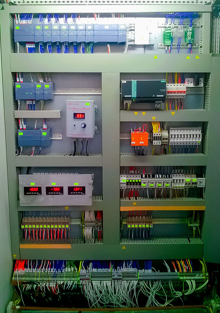 + Điều khiển tự động nhiệt độ máng hồ và lô sấy.